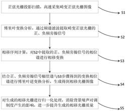 2.根据权利要求1所述的一种投影光栅相移生成动态三维测量方法,其特征在于,畸变正弦光栅信号表示如下:I(x,y)=a(x,y)+b(x,y)cos[2πfxx+2πfyy+φ(x,y)]式中,(x,y)表示采样的畸变正弦光栅图像的像素坐标,I(x,y)代表畸变正弦光栅信号强度,a(x,y)代表背景光强,b(x,y)代表畸变正弦光栅调制度,fx代表原始正弦光栅在x轴方向上的频率,fy代表原始正弦光栅在y轴方向上的频率,φ(x,y)则代表畸变正弦光栅图像中与被测物体表面形貌相关的初始相位。