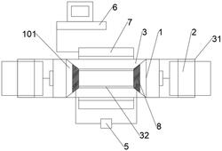 1.一种测量不同加载条件下岩心参数的装置,其特征在于,包括岩心夹持装置(1)、施压装置(2)、核磁共振发生检测模块、声波数据发生采集模块,以及内部填充有围压介质的围压腔体(3);所述岩心夹持装置(1)设置在所述围压腔体(3)的两侧,且所述岩心夹持装置(1)用于对轴向放置在所述围压腔体(3)内的岩心进行夹持;所述施压装置(2)设置在所述岩心夹持装置(1)的外侧,且所述施压装置(1)用于对所述岩心夹持装置(1)施加沿岩心轴向的压力,所述岩心夹持装置(1)压缩所述围压腔体(3)的体积使所述围压介质对岩心的表面产生围压;