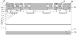 1.5μm~15μm;p+发射区(9)与第一p阱区(4)之间存在间距,间距为0.5μm~2.5μm。