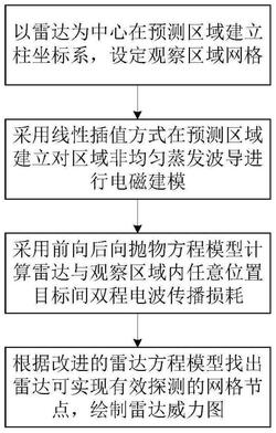 带入雷达的具体工作参数及步骤S3得到的双程电波传播损耗Ltw空间分布,即可确定能够被雷达有效探测到的各网格点,各有效网格点的集合所覆盖范围则是雷达威力范围;