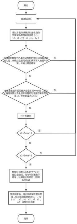 步骤2)将得到的交通状态信息代入预先训练好的神经网络算法的输入层,模拟超车决策,并输出超车或不超车结果;