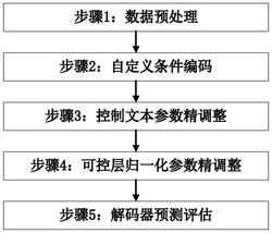 将控制文本Xc通过编码网络得到编码信息,在生成式预训练模型的生成操作层融入该编码信息实现可控层归一化CLN:[γc,βc]=Encoder(E1(Xc))式中,编码网络Encoder(·)用于将控制文本Xc编码成γc、βc两个可学习的权重向量;
