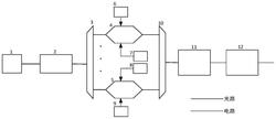 S2、解复用输出N路光脉冲信号分别进入N个双驱动马赫曾德尔调制器,由2N路数字信号进行强度调制;