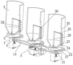 6.根据权利要求1所述的一种基于无线体域网技术的老人健康监护装置,其特征在于,所述推动机构包括固定安装于转盘(5)上表面的弧形斜台(22),所述储药筒(3)的外表面固定安装有限位板(36),所述限位板(36)的外表面插设有移动杆(23),所述移动杆(23)与弧形斜台(22)的上表面相抵,所述移动杆(23)的外表面固定安装有限位环(24),所述移动杆(23)的顶端固定安装有连接板(25),所述储药筒(3)的外表面贯穿开设有与连接板(25)相匹配的矩形开口(35),所述连接板(25)远离移动杆(23)一端的下表面固定安装有导杆(26),所述导杆(26)靠近其底端的外表面圆周固定安装有多根提杆(27),所述移动杆(23)的外表面套设有复位弹簧(28),所述复位弹簧(28)设置于限位板(36)的下表面与限位环(24)的上表面之间。
