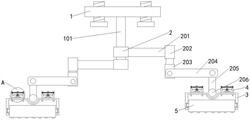 2.如权利要求1所述的一种颌骨手术用无影灯固定装置,其特征在于:所述调节结构包括:阻尼转轴A(2)、支撑杆A(201)、阻尼转轴B(202)、阻尼转轴C(203)、支撑杆B(204)、支撑杆C(205)和球形接头(206),其中,所述固定杆(101)下方活动设置有阻尼转轴A(2),所述阻尼转轴A(2)一侧固定安装有支撑杆A(201),所述支撑杆A(201)一侧转动设置阻尼转轴B(202),所述阻尼转轴B(202)下方转动设置有阻尼转轴C(203)。