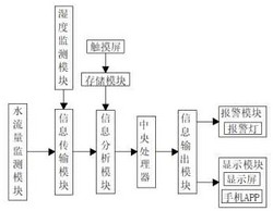 1.一种智慧水务工程用具有漏水监测功能的水龙头,包括水流量监测模块,其特征在于:所述水流量监测模块的输出端电连接有信息传输模块,所述信息传输模块的输入端电连接有湿度监测模块,所述信息传输模块的输出端电连接有信息分析模块,所述信息分析模块的输出端电连接有中央处理器,所述中央处理器的输出端电连接有信息输出模块,所述信息输出模块的输出端分别电连接有报警模块和显示模块。