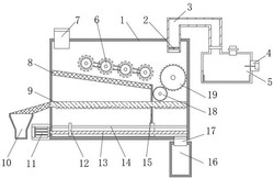 4.根据权利要求1所述的一种固体废物处理装置,其特征在于:所述排气管(9)的内部安装有有加热板,所述排气管(9)位于装置外壳(1)内部的底端开设多组有通风口。