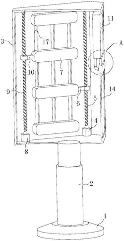 3.根据权利要求1所述的一种英语教学用趣味卡片展示装置,其特征在于:所述伸缩装置(7)的一侧固定安装有压板(18),且压板(18)在靠近伸缩装置(7)的一侧与防护棉(19)的一侧固定连接,且伸缩装置(7)的数量为四个。