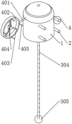 5.根据权利要求1所述的一种水文地质勘探地下水位观测装置,其特征在于:所述检测探头(304)外壁套装有刚性防水管,所述刚性防水管两端分别连接水位传感器(303)和配重球(305)。