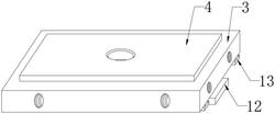 1.一种高精度高速插槽机,包括工作台(1)、治具底座(3)、治具(4)以及驱动电机(14),其特征在于:所述驱动电机(14)安装在工作台(1)内部,所述驱动电机(14)的输出轴上安装有齿轮,所述工作台(1)上端表面开中间设有凹槽,所述治具底座(3)上端下端表面中间固定有齿板(12),所述齿板(12)穿过凹槽与驱动电机(14)上的齿轮啮合连接,所述治具底座(3)上端表面开设有连接槽,所述治具(4)滑动设置在连接槽内,所述治具(4)的孔上设置有产品(15),所述治具(4)的右端表面开设有调节滑槽一(6),所述调节滑槽一(6)右端面开设有连接滑槽一(7),所述连接滑槽一(7)内滑动设置有两个滑动块一(8),所述治具(4)的前端表面开设有调节滑槽二(10),所述调节滑槽二(10)后端面开设有连接滑槽二(9),所述连接滑槽二(9)内滑动设置有两个滑动块二,所述治具(4)的右端表面开设有两个螺纹槽一,所述螺纹槽一内连接有左右调节旋杆(2),所述左右调节旋杆(2)的左端与滑动块一(8)活动连接,所述治具(4)的前端表面开设有两个螺纹槽二,所述螺纹槽二内连接有前后调节旋杆(11),所述前后调节旋杆(11)的后端与滑动块二活动连接。