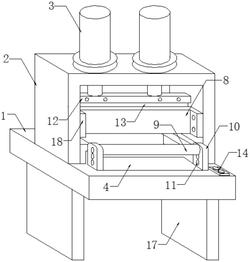 4.根据权利要求1所述的一种英语教学用英语卡片切割设备,其特征在于,所述切割台(1)中部的两侧均固定设有限位侧板(6),两个所述限位侧板(6)一侧的顶部均固定设有限位顶板(7),所述切割台(1)的中部开设有与切割刀(13)相对应的切刀槽(16),所述切割台(1)的一端开设有与限位侧板(6)相对应的收集槽(19),所述切割台(1)底端的两侧均固定安装有固定座(17)。