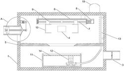 3.根据权利要求2所述的一种用于粉尘车间的环境监测报警装置,其特征在于:所述壳体(1)的内腔底部位于通孔的下方设置有水箱(11),所述水箱(11)的内部设置有水泵(12),所述水泵(12)的出水端通过水管连接有喷管(13),所述喷管(13)设置在壳体(1)远离进气管(2)的一侧内壁上,且其位于隔板(5)的上方,所述喷管(13)的表面设置有喷头。