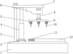 4.根据权利要求1所述的一种用于多种规格螺母的攻丝设备,其特征在于:所述驱动装置(6)的输出端固定连接有转轴(8),所述转轴(8)的底端固定焊接有调节圆板(5),所述调节圆板(5)的底端装配有四组微型电机(9),所述微型电机(9)的输出端通过联轴器固定连接有攻丝头(10)。