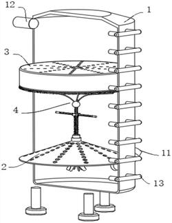 1.一种固定化生物脱氮污水处理反应器,包括反应器本体(1),其特征在于:所述反应器本体(1)底部连接有进入管道(11),且反应器本体(1)的顶部连接有排出管道(12),所述反应器本体(1)内部的底端位置处设有污泥静置件(2),且污泥静置件(2)顶部设有生物吸附膜层(3),所述生物吸附膜层(3)的底部与污泥静置件(2)之间连接有防堵件(4),污染进入所述污泥静置件(2)静置推动防堵件(4)在生物吸附膜层(3)底部处进行扫动。