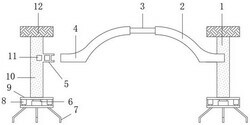 5.根据权利要求3所述的一种用于铁路桥涵施工的支撑桩,其特征在于,所述第一曲面杆(2)和第二曲面杆(4)底端固定安装有与矩形开口(11)、H型架(5)适配的插块(13),且第一曲面杆(2)和第二曲面杆(4)弧面顶端开设有多个等角度的卡槽(14)。