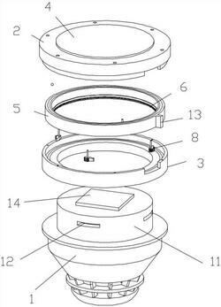 4.根据权利要求1所述的一种便于拆装的烟雾探测器,其特征在于,所述上壳体和下壳体正对设置有凹槽,所述凹槽内嵌有滚珠,所述圆环正对设置有滚珠通道。