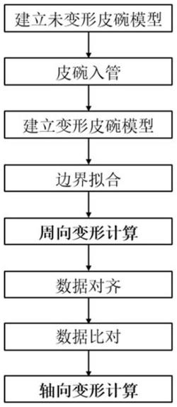 5.根据权利要求1所述的清管器皮碗在管道中变形测量方法,其特征在于,所述步骤四具体包括:选取皮碗变形前、后的三角形网格模型的边界,对其进行圆拟合,分别得到皮碗变形前、后三角形网格模型边界拟合圆的直径D、D拟合。