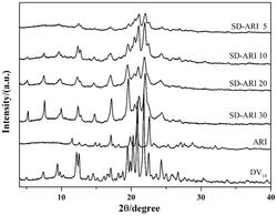 将阿立哌唑与DP‑VPA按一定比例溶于有机溶剂,通过旋转蒸发制备,经真空干燥,制得阿立哌唑固体分散体,真空干燥条件为40‑60℃。