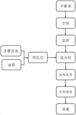 混合斩:将多糖物质溶于水中,与食用油混合进行预乳化,加入处理后的鱼糜斩拌,再与木薯淀粉和剩余水斩拌混合均匀,得到低汤汁损失冷冻包馅鱼丸的外皮材料;
