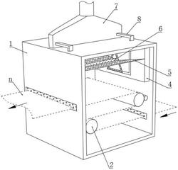 7.根据权利要求6所述的一种循环变温式熔喷布干燥装置,其特征在于:所述干燥箱(1)远离箱门(12)的侧端固定连接有与干燥箱(1)内部相通的出风管(10),所述出风管(10)位于牵引辊(2)的下侧。