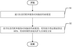 S2、基于医患匹配和服务时间偏好约束模型,利用混合禁忌搜索算法HTS,得到周期性家庭医护人员调度方案;