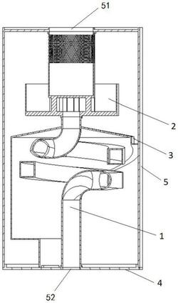 所述螺旋管道的内壁形成进风通道,所述螺旋管道的下端设置有与其连通的进风管,所述进风管具有第二进风口;所述螺旋管道的上端设置有与其连通的出风管,所述出风管具有第二出风口;所述螺旋管道远离其螺旋中心轴一侧的侧壁上至少设置有1个初滤开口;