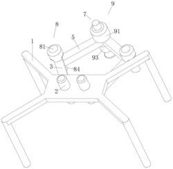 所述二号铰接柱(6)的截面形状为圆环形,二号铰接柱(6)的内壁与拾取机构(7)固连;所述一号润滑机构(8)包括一号油箱(81);所述一号油箱(81)与一号杆(3)远离二号铰接柱(6)的端面固连;所述一号铰接柱(4)和二号铰接柱(6)的外侧壁上均设置有润滑槽(82);所述一号杆(3)内设置有一号贯穿槽(83);所述一号贯穿槽(83)的一端贯穿一号杆(3)并与一号油箱(81)内部相连通,一号贯穿槽(83)另一端贯穿一号铰接柱(4)的端面和润滑槽(82)的槽底与润滑槽(82)相连通;所述二号润滑机构(9)包括二号油箱(91);所述二号油箱(91)的形状为圆环形,二号油箱(91)的内壁与拾取机构(7)固连;所述二号杆(5)内设置有二号贯穿槽(92);所述二号贯穿槽(92)的一端贯穿二号杆(5)并与二号油箱(91)内部相连通,另一端贯穿二号铰接柱(6)的端面和润滑槽(82)的槽底与润滑槽(82)相连通;