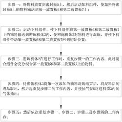 步骤一:将物料放置到密封板(5)上,然后启动加料组件,使加料将密封板(5)上的物料输送到第一放置板(6)和第二放置板(7)上;