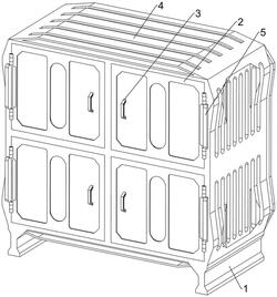 2.按照权利要求1所述的一种可保护骨灰盒的骨灰盒存放架,其特征是:关闭组件(5)包括有第一磁块(51)、第二磁块(52)、限位杆(53)和第一弹簧(54),四个挡板(2)前侧均设有第一磁块(51),机架(1)前侧设有四个第二磁块(52),第一磁块(51)转动后均与同侧的第二磁块(52)相吸,四个挡板(2)内侧均滑动式设有两个用于限位挡板(2)的限位杆(53),限位杆(53)均与机架(1)接触,限位杆(53)均与同侧的挡板(2)之间连接有第一弹簧(54)。