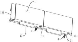 5.根据权利要求1所述的大规格薄板铺贴结构,其特征在于:所述限位槽(21)从安装架(2)的边侧向另一侧延伸使限位件(31)和部分连接杆(32)能够从安装架(2)的边侧滑入到安装架(2)中,使所述支撑装置(3)与安装架(2)形成垂直的限位,所述螺钉孔(41)位于限位槽(21)中。