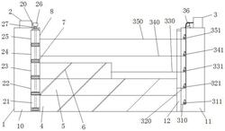 6.根据权利要求1所述的一种伸缩式河道流量调节装置,其特征在于:所述第四卷盘(24)上卷收有第四挡板(7),且第四牵引绳(340)的下端固定在第四挡板(7)的右端,并且第四牵引绳(340)经过第四小转向滑轮(341),且第四挡板(7)在水平方向上为伸缩结构,并且第四挡板(7)的左上角开设有第二卡槽(70)。