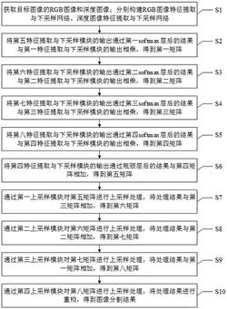 S1、获取目标图像的RGB图像和深度图像;分别构建RGB图像特征提取与下采样网络、深度图像特征提取与下采样网络;
