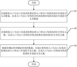S21、分别计算得到入口与出口分离式收费站入口每班次ETC引导员人数和出口每班次ETC引导员人数:其中,mre和mce分别表示入口与出口分离式收费站入口每班次ETC引导员人数和出口每班次ETC引导员人数,Nre和Nce分别表示入口与出口分离式收费站入口ETC车道数和出口ETC车道数;