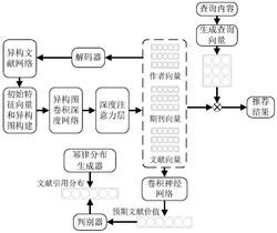 4.如权利要求1所述的一种异构环境下嵌入预期价值的文献推荐方法,其特征在于:所述步骤S7具体过程如下:S7.1:首先给定查询q=[qw,qΑ,qJ],其中qw为查询文本所有词,qΑ为查询作者所有词,qJ为查询来源所有词,然后将查询q=[qw,qΑ,qJ]转化为向量 其中 为查询文本所有词的平均向量, 为查询作者所发表过的所有文献所包含词的平均向量, 为查询来源中所有文献所包含词的平均向量;