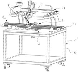 3.如权利要求1所述的一种板材损伤修复装置,其特征在于:还包括形成于所述支撑机构一侧的进料位、形成于所述支撑机构的另一侧的出料位以及形成于所述进料位及出料位之间且途经所述支撑机构的传送机构;所述支撑机构位于所述传送机构的下方位置并能够上/下伸降,用于向上举升到达此处的损伤板材并进行固定,还用于将经过修复后的板材下降至所述传送机构上;所述损伤板材经所述进料位至所述传送机构上,经所述传送机构传送至所述支撑机构以在所述支撑机构的作用下向上脱离所述传送机构,以供所述焊接填补机构对损伤部位进行焊接填补修复;修复后的板材在所述支撑机构的作用下回到所述传送机构,并由所述传送机构输送至所述出料位。