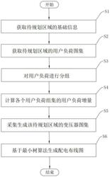 所述根据基础信息、变压器图集和若干个用户负荷组集基于最小树算法生成配电布线图具体包括以下步骤:根据GIS地理信息图集、变电站图集和变压器图集,将变电站标记为原点,将变压器标记为支点,基于最小树算法计算生成一级布线图;