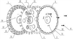 1.播量可调的水稻精量穴直播排种盘,其特征在于,包括同轴可相对转动设置的腔道盘、齿盘和充种盘,所述腔道盘中沿周向均匀设置有若干充种腔和若干排种腔,所述充种腔与所述排种腔沿所述腔道盘的轴向方向一一对应,通过沿所述腔道盘径向方向延伸的隔板进行分隔,并通过所述隔板端部的连通口连通;所述腔道盘的圆周面上还间隔设置有排种口,所述排种口与所述排种腔连通;