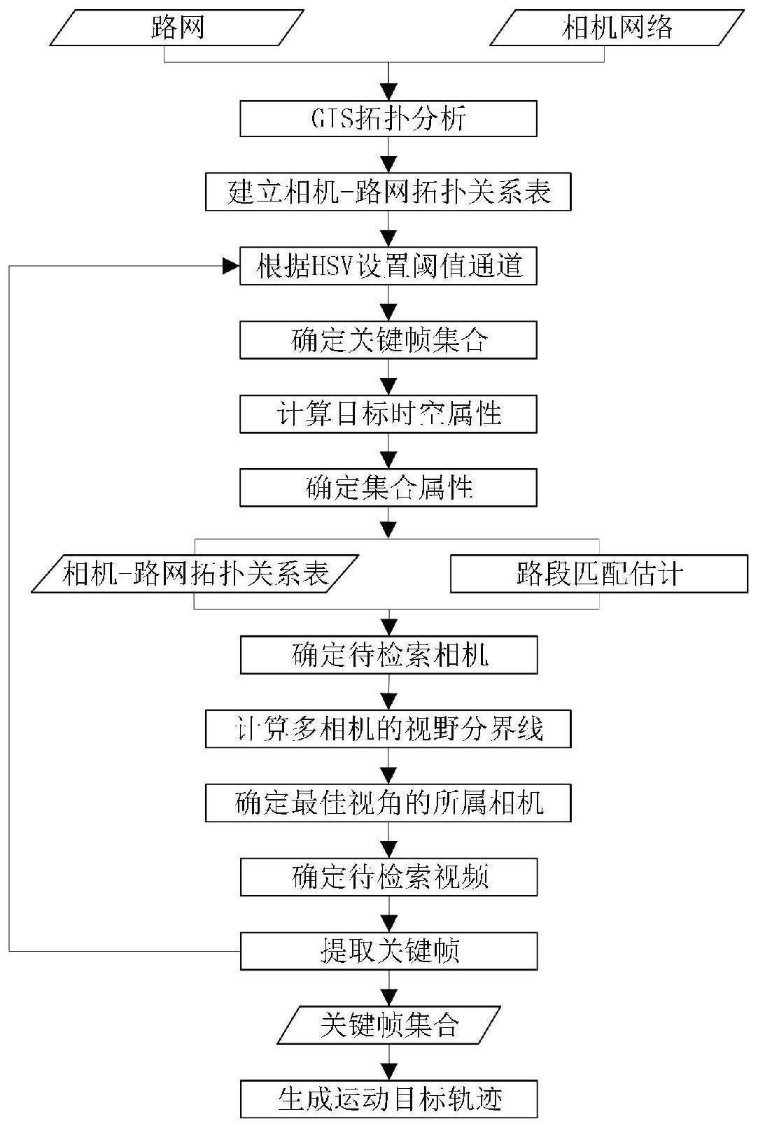 2中,获取摄像机采集的当前运动目标所在路网区域的视频集合,从视频集合中提取当前运动目标所在的帧作为关键帧以构建关键帧集合,基于关键帧集合中各个关键帧在摄像机坐标系统中的时空信息,得到当前运动目标在摄像机坐标系中的时空属性信息。
