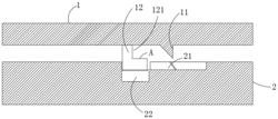 当第一墙板(1)下压时,连接块(12)进入容置槽(22)中被限位,驱动块(11)推动滑块(21)进入限位槽(121)中,滑块(21)对连接块向上的运动限位;