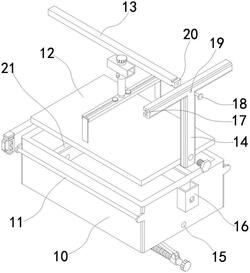 2.根据权利要求1所述的减少蛋糕破损的蛋糕脱模装置,其特征在于:所述导向组件包括T型杆(14),所述T型杆(14)的下端穿设在所述定位框(16)内由螺栓固定,所述T型杆(14)的上端开设有导向滑槽(17),横杆(13)的一端设置有导向滑块(20),所述导向滑块(20)卡设在所述导向滑槽(17)内。