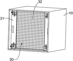 过滤结构,所述过滤结构设置在进风管道内的前端,所述过滤结构包括框体结构和滤网,所述滤网设置在框体结构的中部位置,所述框体结构上设置有卡合组件,所述卡合组件包括伸缩柱、固定框、弹簧结构、连接块和推拉柱,所述固定框设置在框体结构上,所述伸缩柱穿设设置在固定框左侧,所述弹簧结构套设在伸缩柱的左侧上,所述伸缩柱的左侧端部设置有卡合头,所述连接块的一端与伸缩柱的右侧端部连接,所述连接块上设置有斜置孔,所述斜置孔内设置有可移动的导向柱,所述推拉柱的上端通过竖直板与导向柱连接,所述推拉柱穿设设置在固定框的下侧,所述卡合头与卡合孔可分离的配合。