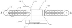 3.根据权利要求2所述的一种双旋翼无人机,其特征在于:所述摄像模块(3)包括套设在连接杆(2)外部的套体(9)、设在套体(9)外壁左侧的齿槽(18)、设在连接杆(2)上的电机(11)、主驱动齿轮(10)、设在套体(9)内部的摄像组件(12)、电刷(17)与集电环(13),所述套体(9)通过轴承与连接杆(2)外壁连接,且电刷(17)设在套体(9)右端部,所述集电环(13)设在连接杆(2)的外壁上,且集电环(13)与电池块(8)电性连接,所述电刷(17)与集电环(13)滑动接触用于传输信号与电流,所述电机(11)的输出轴与主驱动齿轮(10)连接,且主驱动齿轮(10)与齿槽(18)啮合,所述电机(11)与电池块(8)电性连接,所述电刷(17)与摄像组件(12)电性连接。