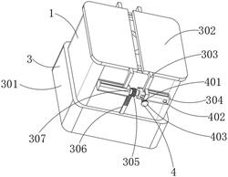 5.根据权利要求1所述的一种新型转换插座,其特征在于,所述防护块(301)为中空无顶的矩形结构,所述防护块(301)的底部设置有略大于所述插头(2)长度、宽度的凹槽。