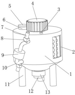 4.根据权利要求1所述的一种智能监测微藻发酵温度辅助装置,其特征在于,所述罐体(1)的底部为正锥型,所述罐体(1)的底部中心连接有排放管(12),所述排放管(12)上设有排料阀(13),所述罐体(1)的底部固定连接有多个支脚(11)。