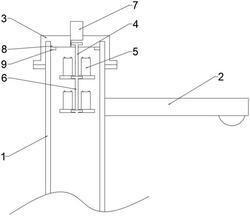 1.一种太阳能路灯蓄电池安装结构,包括灯杆,所述灯杆上部设置有灯臂,灯臂末端设置有照明灯头,其特征在于:所述灯杆顶端设置有盖板,盖板上方设置有太阳能电池板,所述灯杆上端内侧还设置有蓄电池组,所述盖板下端面开设有贯穿盖板侧面的定位槽,所述定位槽呈T型,定位槽内设置有呈工字型的定位板,定位板的上端内嵌定位于定位槽,定位板的下端容置蓄电池组。