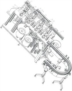 1.一种行星减速箱电机部件转移设备,其特征在于,包括:直线导轨、滑动座、水平驱动装置、第一机械手、第二机械手、第三机械手、第四机械手、导向座、第一导向杆以及穿杆座;压轴承设备、压底座设备以及压磁瓦设备依次排成一条加工直线,加工直线上设置有电机外壳的初始位置以及输出位置,初始位置位于压轴承设备背离压底座设备一侧,输出位置位于压磁瓦设备背离压底座设备一侧,初始位置、压轴承设备、压底座设备、压磁瓦设备以及输出位置在加工直线上的间距相等,与加工直线平行设置有一直线导轨;直线导轨上安装有能滑动的滑动座,滑动座上安装有相互间隔的第一机械手、第二机械手、第三机械手和第四机械手,第一机械手用于将电机外壳从初始位置转移至压轴承设备上,第二机械手用于将电机外壳从压轴承设备转移至压底座设备上,第三机械手用于将电机外壳从压磁瓦设备转移至输出位置上;在直线导轨上安装有水平驱动装置,水平驱动装置的输出端连接至滑动座;在直线导轨旁安装有两相互间隔的导向座,两导向座被第一导向杆连接,第一导向杆穿过穿杆座,穿杆座固定至滑动座,第一导向杆与直线导轨平行。2.根据权利要求1所述的一种行星减速箱电机部件转移设备,其特征在于,直线导轨安装在一竖直板上,竖直板位于竖直方向上,竖直板边缘向上延伸形成凸缘,凸缘安装导向座和第一导向杆。3.根据权利要求2所述的一种行星减速箱电机部件转移设备,其特征在于,第一导向杆两端延伸形成圆柱杆,圆柱杆背离第一导向杆的端部延伸形成第一螺纹杆,第一螺纹杆螺纹连接第一螺帽,圆柱杆穿过导向座。4.根据权利要求3所述的一种行星减速箱电机部件转移设备,其特征在于,两导向座之间安装有两第二导向杆,两第二导向杆穿过穿杆座。5.根据权利要求4所述的一种行星减速箱电机部件转移设备,其特征在于,两第二导向杆两端均延伸形成第二螺杆,第二螺杆螺纹连接至第二螺帽。6.根据权利要求1至5任意一项所述的一种行星减速箱电机部件转移设备,其特征在于,滑动座开设有通孔,通孔贯穿滑动座。7.根据权利要求6所述的一种行星减速箱电机部件转移设备,其特征在于,第一机械手、第二机械手、第三机械手以及第四机械手均包括:悬吊座、升降驱动组件、第三导向杆、升降座、移动座、夹持臂、水平驱动组件以及夹持驱动组件,悬吊座固定至在滑动座上,悬吊座上安装有升降驱动组件,升降驱动组件的输出端连接至升降座,升降座固定至第三导向杆,第三导向杆穿过悬吊座,升降座上安装有能在水平方向上移动的移动座,移动座上安装有夹持臂以及夹持驱动组件,夹持臂有两个,夹持臂能相对移动座相互靠近或远离,夹持驱动组件与两夹持臂连接,夹持驱动组件用于驱动夹持臂相互靠近或远离。