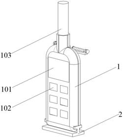 1.一种便于固定的噪声检测用声级计,其特征在于,包括声级计主体(1)、卡接底座(2)、支撑柱(3)、连接块(4)、卡接单元(5)、第一固定螺帽(6)和第二固定螺帽(7);所述声级计主体(1)的前侧面上设置有显示屏(101)和控制按钮(102),所述声级计主体(1)的上端上设置有采集天线(103),所述声级计主体(1)的下端上从左至右开设有T字形卡槽;所述卡接底座(2)卡接在声级计主体(1)的下端上;所述支撑柱(3)的下端转动安装在卡接底座(2)上;所述卡接单元(5)通过连接块(4)转动安装在支撑柱(3)的上端上;所述第一固定螺帽(6)将卡接底座(2)和支撑柱(3)之间相固定;所述第二固定螺帽(7)将支撑柱(3)和连接块(4)之间相固定。
