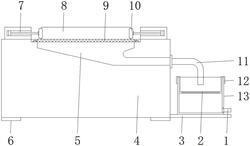 1.一种定位回转支承装置,包括延伸板(3)、工作台(4)、气动杆(7)、框体(12)和箱体(13),其特征在于:所述工作台(4)的下表面焊接有支撑座(6),所述工作台(4)的上表面中间位置处开设有汇流腔(5),所述汇流腔(5)的顶端开口处通过螺栓固定有网板(9),所述汇流腔(5)的底端开口处设有软管(11),所述气动杆(7)通过螺栓等距设在工作台(4)的上表面,所述气动杆(7)的端头位置处安装有挤压块(10),所述延伸板(3)焊接在工作台(4)的外壁底端,所述延伸板(3)的上表面搁置有箱体(13),所述箱体(13)的上端活动安装有框体(12),所述框体(12)上镶嵌安装有过滤网(2)。