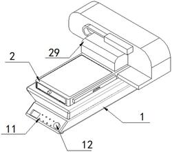 一打印平台(2),所述打印平台(2)上端面平行滑动设有一打印头(29),所述打印平台(2)上端面开腔设有一腔体(21);
