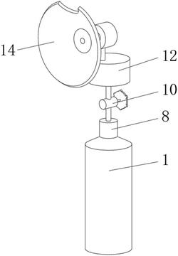 1.一种便携式呼吸内科临床用的吸氧器,包括氧气瓶(1)和输氧组件,其特征在于:所述氧气瓶(1)的顶部固定连接有连接嘴(2),所述连接嘴(2)的内部固定套接有密封块(3),所述连接嘴(2)的内部活动套接有活塞阀体(4),所述活塞阀体(4)的底部固定连接有复位弹簧(5),所述输氧组件包括连接帽(8),所述连接帽(8)螺纹套接在连接嘴(2)的外部,所述连接帽(8)的顶部固定连接有开关阀(10),所述开关阀(10)的顶部固定连接有输气管(11),所述输气管(11)的顶端固定连接有加湿盒(12),所述加湿盒(12)的顶部固定连接有出气管(13),所述出气管(13)的正面固定连接有吸氧面罩(14)。